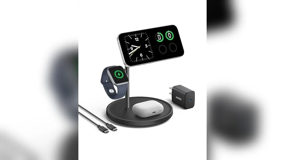 This Anker MagSafe Charger Stand fits perfectly on my desk. Charges my iPhone 15, Apple Watch, and AirPods all at once. No wires cluttering the space. The 15W charging speed is fast and reliable. It stays stable and holds devices well. Easy to use and works with my iPhone 14 too. A helpful accessory for daily charging needs. Keeps everything organized and ready to go. A solid choice for Apple device users.